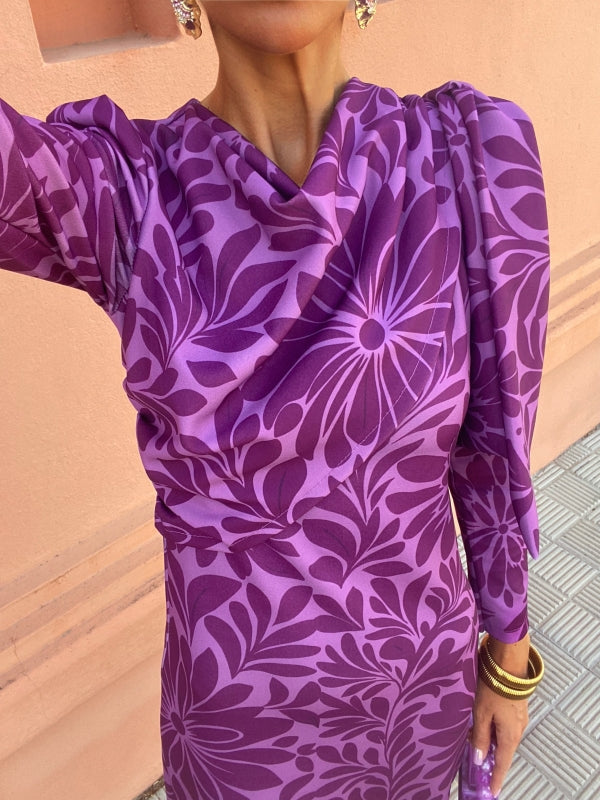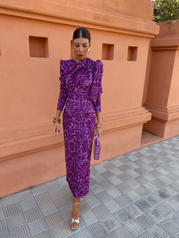 With a fitted cut that enhances the figure, the dress is completed with a back slit, ensuring a fluid and elegant movement when walking. This dress is the perfect choice for those seeking a look that combines a classic aesthetic with subtle modern details.