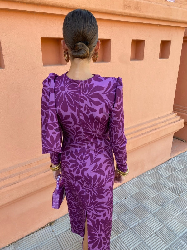 Its design stands out for the puffed shoulders, which provide a structured silhouette and a refined air, making it a couture garment. The most distinctive detail is the delicate bow on the shoulder, which adds an element of femininity and grace.